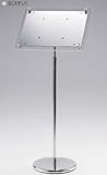 クリアなデザインが新鮮なメッセージスタンド。フレームレスで表示がきれいに引き立ちます。高さや角度の調整が可能です。ショールームなどでの展示案内サイン向きです。
